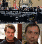Christian Mang und Thomas Rassloff unter typischem Antifa-Bild mit verpixelten Teilnehmern