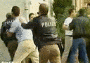 Türkische Mitbürger bei der Diskussion mit Polizeibeamten
