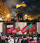 Klare Fronten: Oben Ukrainische Fahne auf dem Maidan, unten Hammer und Sichel bei den Separatisten in Donezk...
